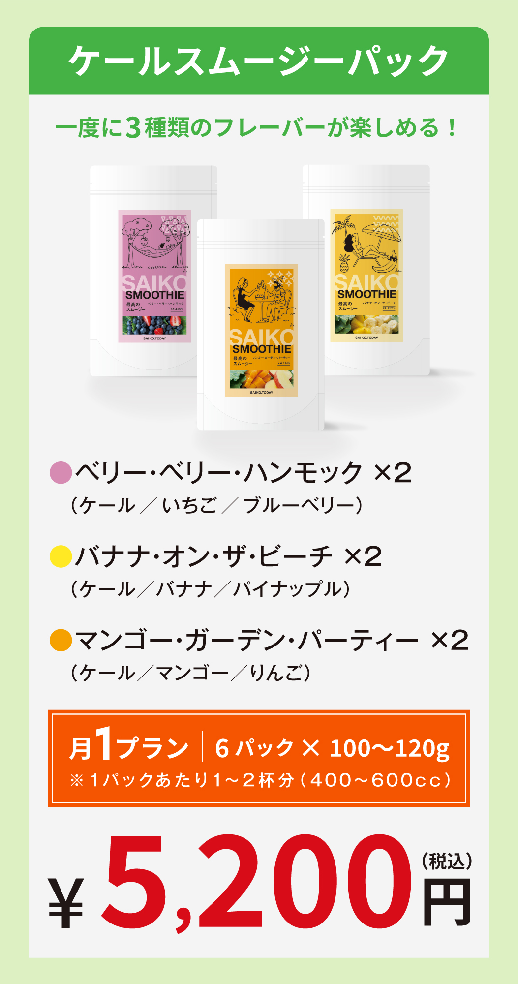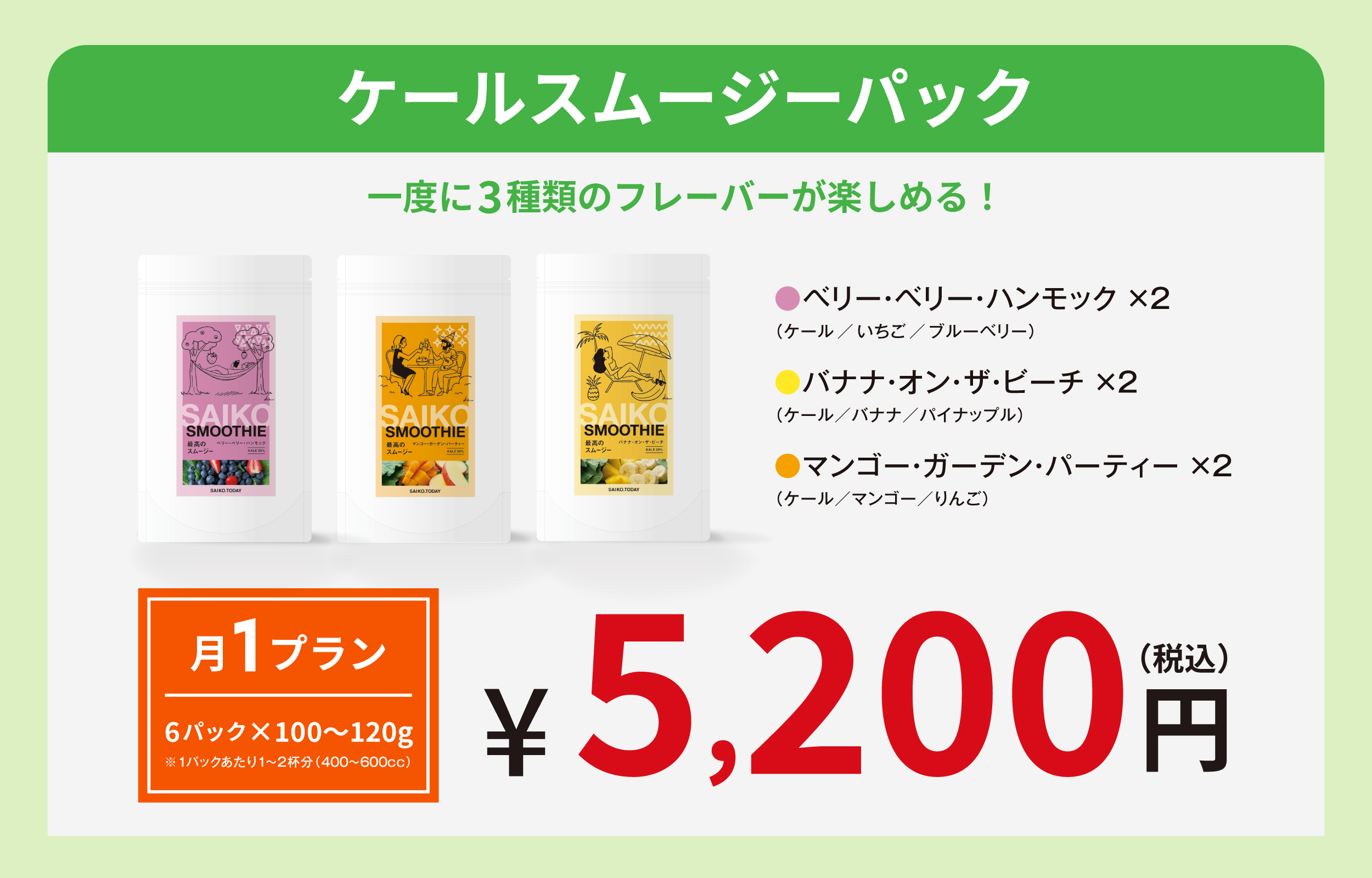濃厚なマンゴーの甘みと、りんごの爽やかさがケールの味わいを引き立てるバランスの良い一杯です。