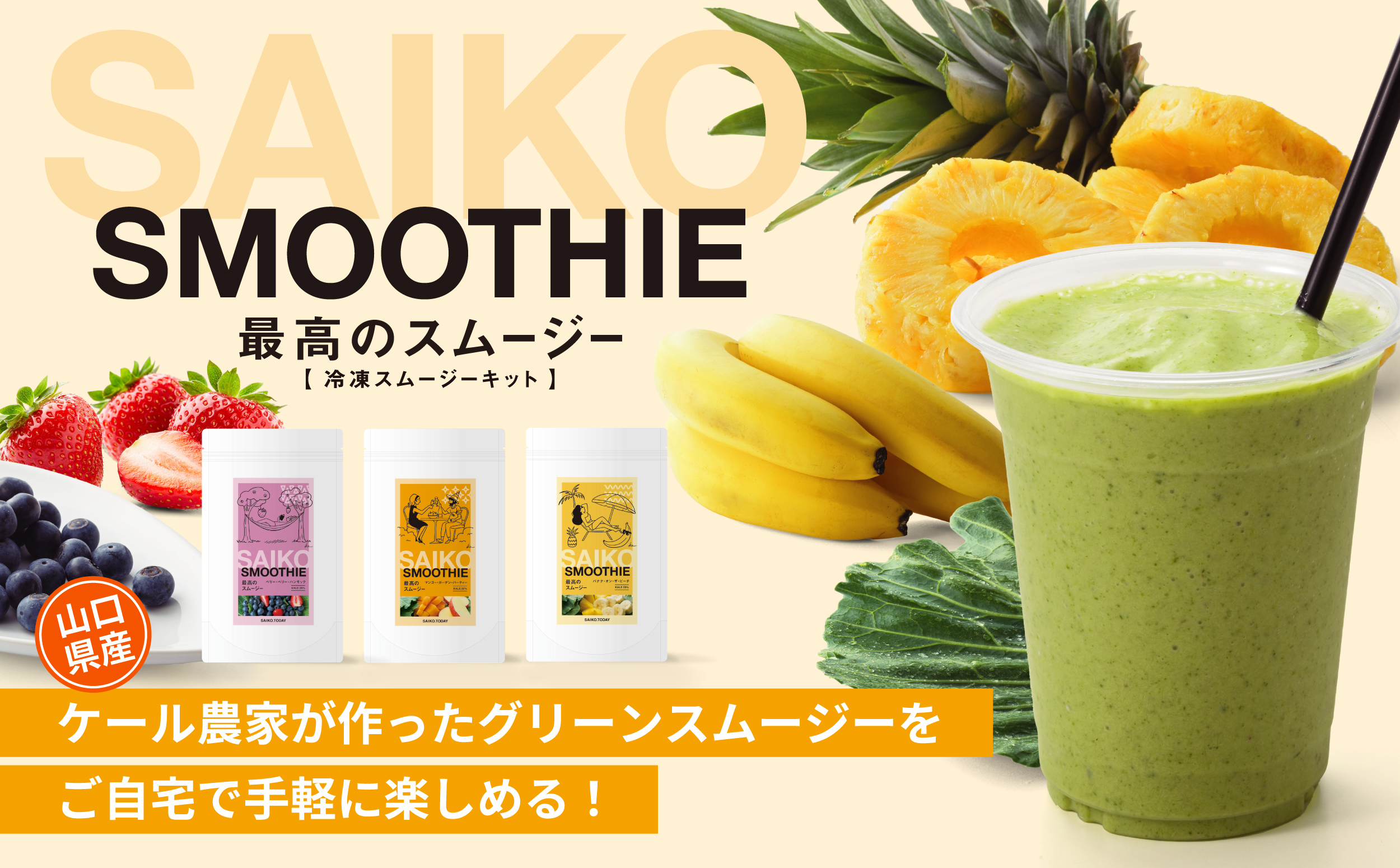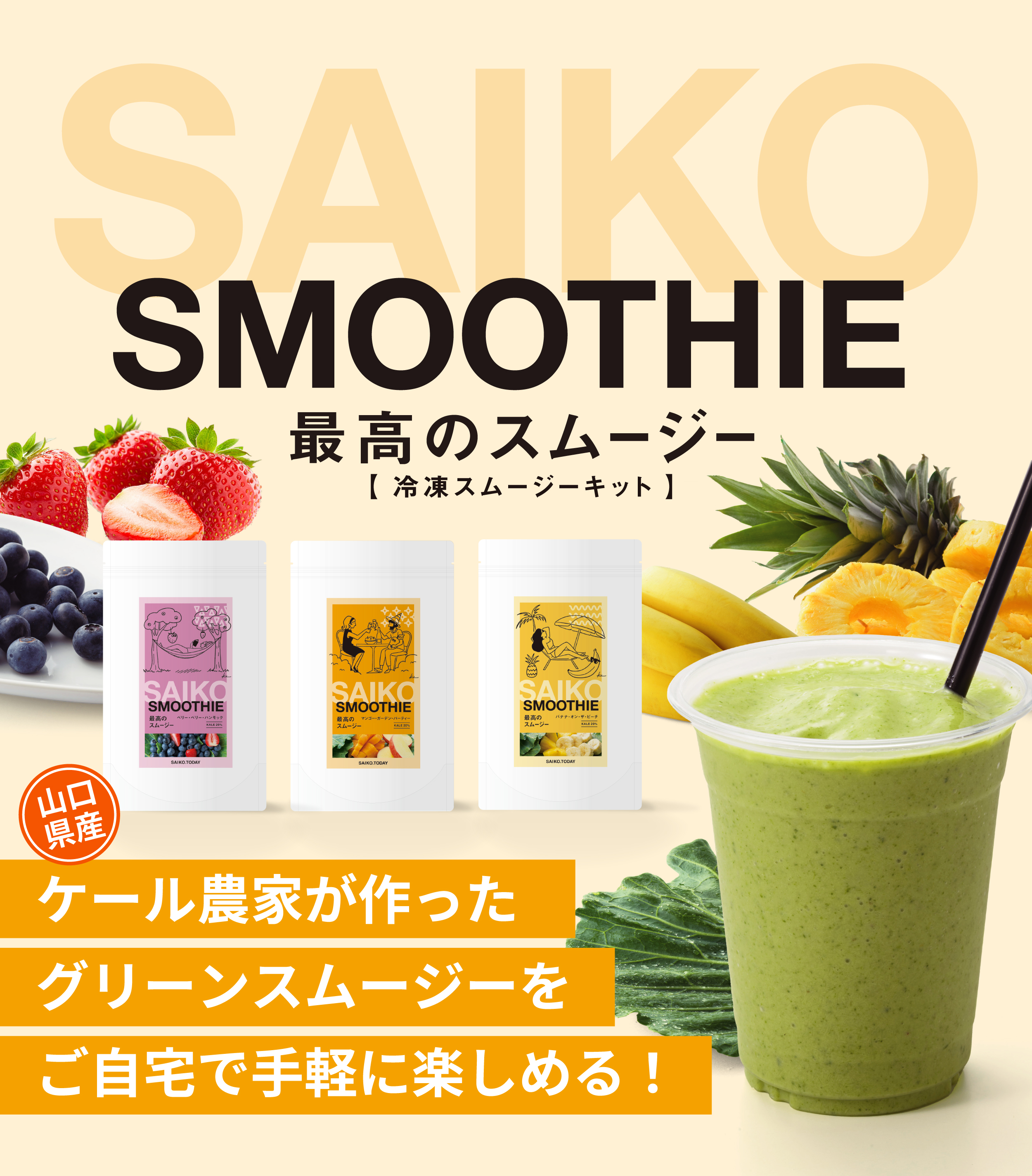2種のベリーが華やかに香り、ケールのコクと美しく調和。彩りも楽しめる、贅沢なスムージーです。
